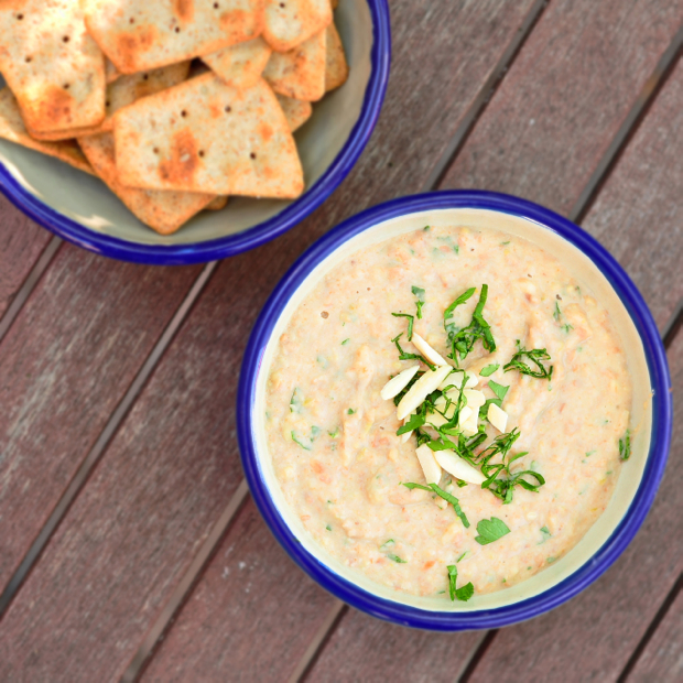 That's what I did when I was feeling "snacky" and made the almond and olive hummus. I knew I had all but the olives on hand - well, I thought I did until I got home and realised I had fava beans, not chick peas. No matter, armed with the simple recipe and easy to follow directions, I was snacking away in no time...