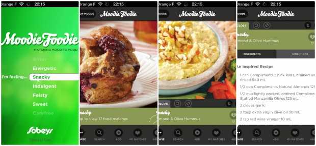 Yes, Sobeys have just launched the Moodie Foodie app (currently only available for iPhone and iPad) and I was asked if I might like to review the app and host a giveaway. I figured you might all be interested in this app as I personally found it an intriguing concept and the more I played with it, the more I liked it.
