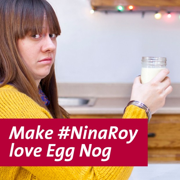 Nina Roy really really doesn’t like Egg Nog. Your challenge is to convince her to love it in any form. We’ve handed all our social media over to Nina for the month of December and we need your help. Share your holiday pics, recipes, and spirit to fill her heart with festive cheer, and you may just be able to change her mind.