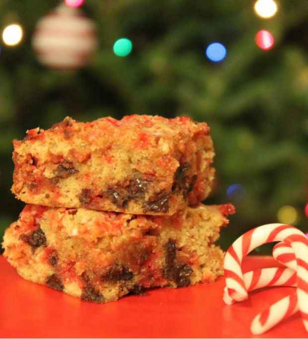 We can't for get the fair cousin of the brownie with these Candy Cane Blondies from Jesse at Out to Lunch Creations!