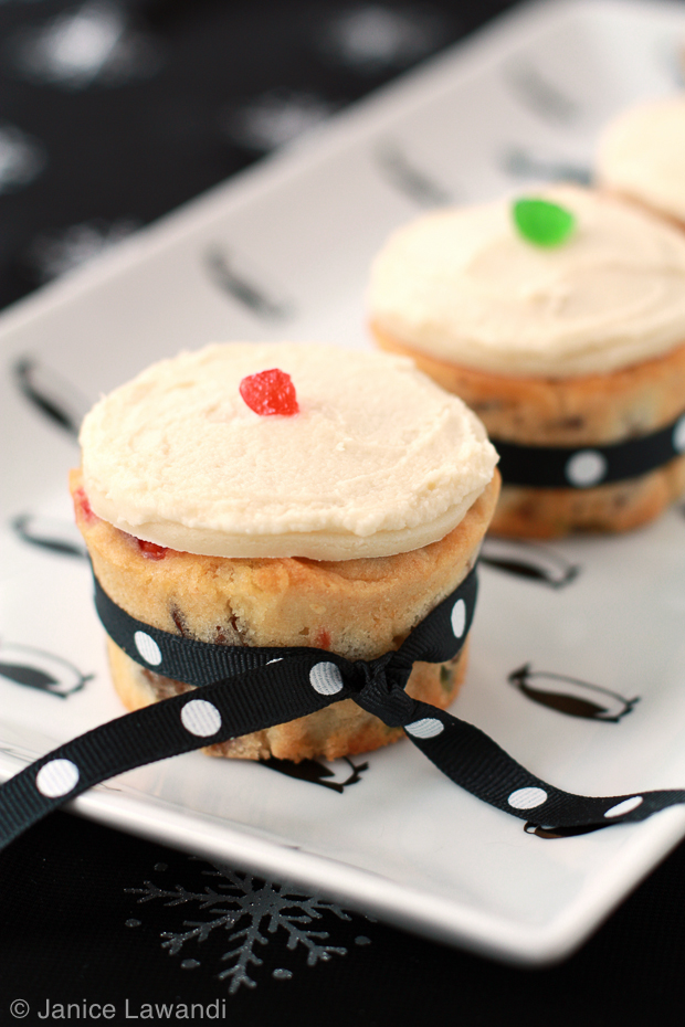 The fruitcake may get a lot of teasing but who can resist these cute little White Fruitcakes with Brandy Frosting from Janice at Kitchen Heals Soul?