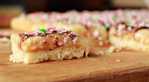 The Gumdrop Button sent on a great idea for a yummy DIY edible gift. Katina's Peppermint Millionaires Shortbread looks perfectly festive!