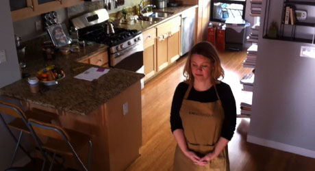 Every kitchen is different and, like us, you may not have much space. Here is where you need to get a little creative and maybe less literal. Try standing at the edge of your kitchen and see how it looks in the background. Why not stand in another room altogether? Watch any cooking show on TV and see what the very first shot is. In many cases, it’s not even in the kitchen.