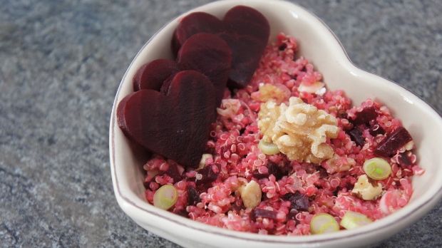 Cooking a romantic dinner? You can start with this sexy pink quinoa salad from Katie's Plate.