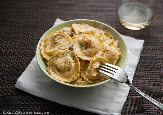 A home cooked meal is a way to anyone's heart and pasta is easy and reminiscent of a little Italian romance. Try these Truffled Garlic Asiago Medallions with Brown Butter Sauce from In Search of Yummyness!