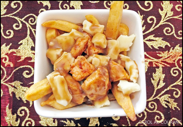 - Put your Fries in a bowl, add some butter chicken on top, then the cheese curds and then pour on the warm gravy