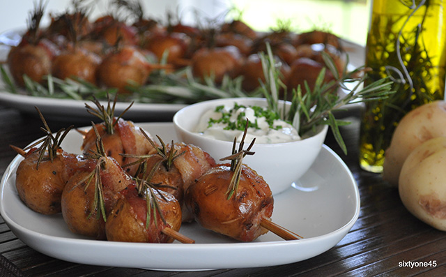 Food on a stick is perfect for the grill and we love these smoked BC new nugget potato skewers with bacon & rosemary from Lisa at Food Well Said.