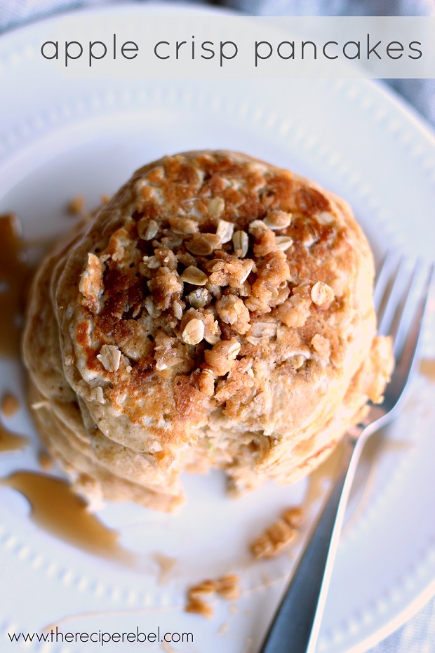 Or you can go with a more traditional round pancake but top it with apple crisp like Ashley's Apple Crisp Pancakes from The Recipe Rebel.