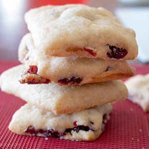 Cranberries add a bright touch of colour to these **[Dried Cranberry Shortbread Cookies](http://ohsweetday.com/2013/12/dried-cranberry-shorbread-cookies.html)** from **Oh Sweet Day**.