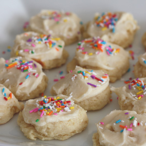 **[Pretty Coconut Shortbread Cookies](http://insearchofyummyness.com/2013/12/12/coconut-shortbread-cookies-with-an-easy-cookie-glaze/)** with an easy cookie glaze.  From **In Search of Yummy-ness**.