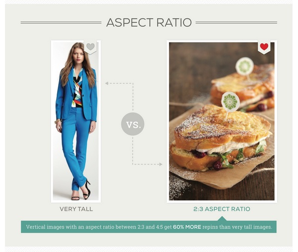 According to Curalate, a Pinterest analytics company, having images that are too tall may not help in getting repins. They found that pins that had a ratio between 2:3 and 4:5 (pixel width:pixel length) received 60% more repins than those that are really tall compared to width.