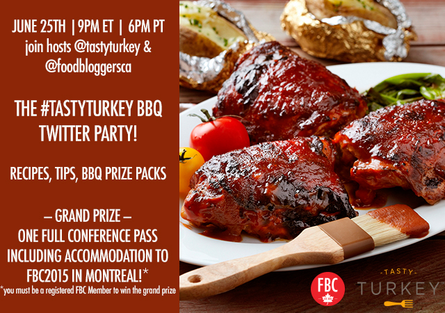 We couldn't be more excited to announce that one of our title sponsors, Turkey Farmers of Canada is going to send one FBC Member to FBC2015 in Montreal in October! A full conference pass to Canada's only National Food Blog conference including accommodations at the Westin Montreal valued at $900 is the grand prize of the Tasty Turkey BBQ Twitter Party!