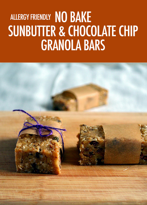 - ⅓ cup sunbutter (http://www.sondibruner.com/2014/02/14/no-bake-sunbutter-chocolate-chip-granola-bars/)