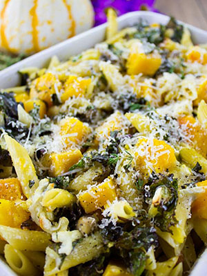 Fall Baked Pasta with Pumpkin & Mushrooms | Two Purple Figs