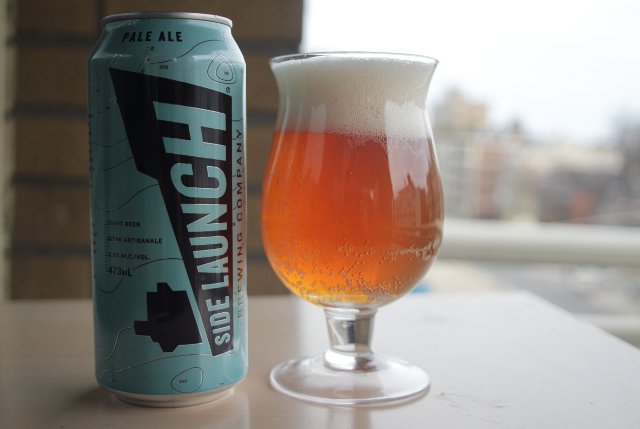 The cloudy, copper-amber colour is set off by a foamy white head. The aroma of Side Launch’s pale ale leans to sweet bread dough in the early stages of rising with just a light citrus touch. These are joined by flavours of a touch of caramel and a clean, gently bitter finish.