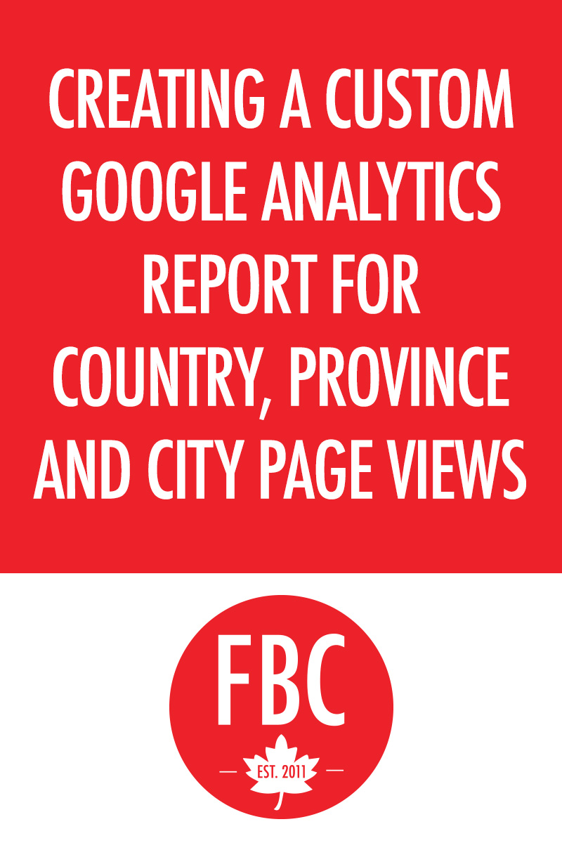 Follow our quick tutorial to learn how to create a custom google analytics report for country page views (or province or city page views). PS - don't forget to adjust your date range when you run your report - Google defaults to 7 days now instead of 30 but most brands are looking for 30 day reporting!