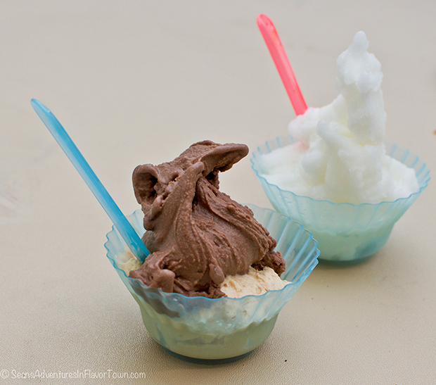 I'm glad we did the bulk of our touring of the festival on the Friday when crowds were small and lineups were short. I returned on Saturday with our FBC Regional Ambassador, Sean Neild but we found the floor too crowded to see much and instead, we tried some of the absolutely delicious bite sized macarons from Kitchening with Carly. I've been on the fence when it comes to the whole macaron trend but after tasting Carly's - well, she's totally won me over (in fact I'm going to head over to Urban Fare today to pick up a dozen while I'm downtown!). We also stopped by for a sample of gelato from the 2012 Florence Italy Gelato Festival - Vancouver's own Bella Gelateria. Pretty obvious why they won... the gelato was fantastic. I had the salted caramel which was so smooth and the flavour was so oustanding. Sean tried the Espresso and even got to have a tiny taste of the flavour that one the competition!