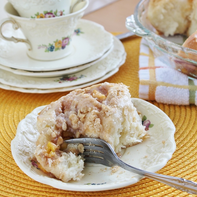 Peach Crumble Cinnamon Rolls – or any cinnamon roll post, really. I adore cinnamon rolls and cannot even find words to express my enthusiasm for them. This peach version is a messy business to make, but so, so worth it!