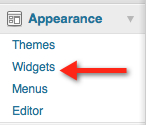 Next you'll add a widget to your sidebar. In your Dashboard, select the Widget menu item (located under Appearance) in your left hand menu.