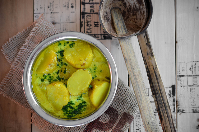 Tuesdays are recipe development and testing days, so most days we will eat whatever I’ve been testing. If I am working on a meat dish, I will throw together another vegetarian main course. This potato avial is a great standby when I want to make a vegetarian dish, and I can vary the vegetables to suit my farmer’s market purchases.