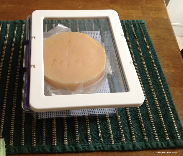 12. Once dry you can wax this cheese, but it is best to develop a natural rind. Ripen at 85% humidity at 50 to 54F/10 to 12C, turning daily. At 10 to 14 days grey powdery mould should appear, this is good.