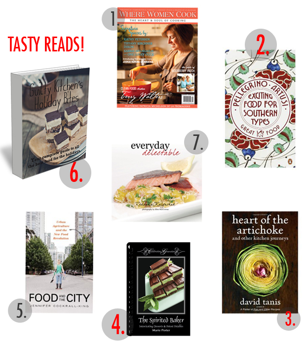 We couldn't go past mentioning some of our members' books as perfect holiday gifts and a great way to support our very own blogging community in Canada: How about Elizabeth (Guilty Kitchen)'s Holiday Bites (6) or Redawna (Nutmeg Disrupted)'s Everyday Delectable? Marie at Celebration Generation 's The Spirited Baker (4) and Evil Cake Overload are available on her site. Each are $17.99, and she has a link at the top of each order page for Canadian orders, specifically!