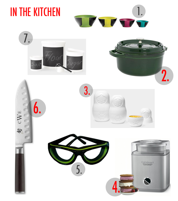 Heather from M is for Mommy loves these little prep bowls (1) 🙂 but also says "I'm all over Dutch Ovens, and I love these cocottes from Tweed & Hickory (2) Renee from Sweet Sugarbean was clearly on a roll with this contest because she found a whole host of gifts for Santa to choose from - like these measuring cups from MOMA (3). Her big ticket item this year has got to be an ice cream maker - like this sweet Cuisinart. She was super jealous of everyone posting amazing ice creams in the summer and notes that she "really really" wants one!