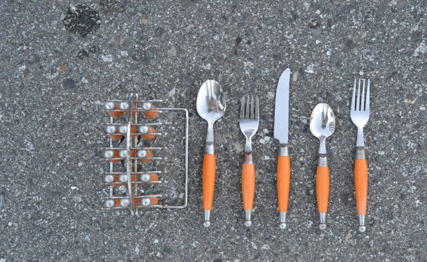 Umm, this set of retro cutlery (and funky stand) cost me $2. Prior to this set, I was able to host a party of ten, now I'm up to 15 guests. I see no flaw in my logic and I'm sticking to that story.