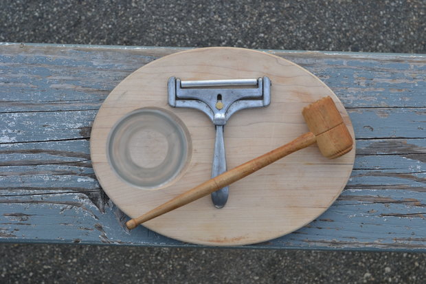 Does anyone really need an old school cheese slicer, a wooden mallet to tenderize meat, a glass container or an oval serving/chopping board? Well, of course! I eat cheese, I eat meat, I need something to pour my lemonade and something to serve the aforementioned cheese and meat. And really, for the $3 those four items cost me, they've already paid for themselves with this post.