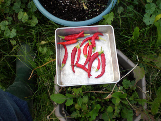 After herbs you want plants that produce for a long while and will be different from what you can find in the store. All of: cherry (or other small) tomatoes, zucchini, cucumbers, the chards and kales, and--most especially--hot peppers grow equally well in containers or an in-ground plot. Carrots, potatoes, and radishes are all recommended for beginners but the problem is that unless you're careful about staggering your planting (I've never managed) you get one big crop of them in the fall. And it comes when you want to be writing and posting about autumn preserving or the last summer tomato not about digging up tubers and tap-roots for winter storage.