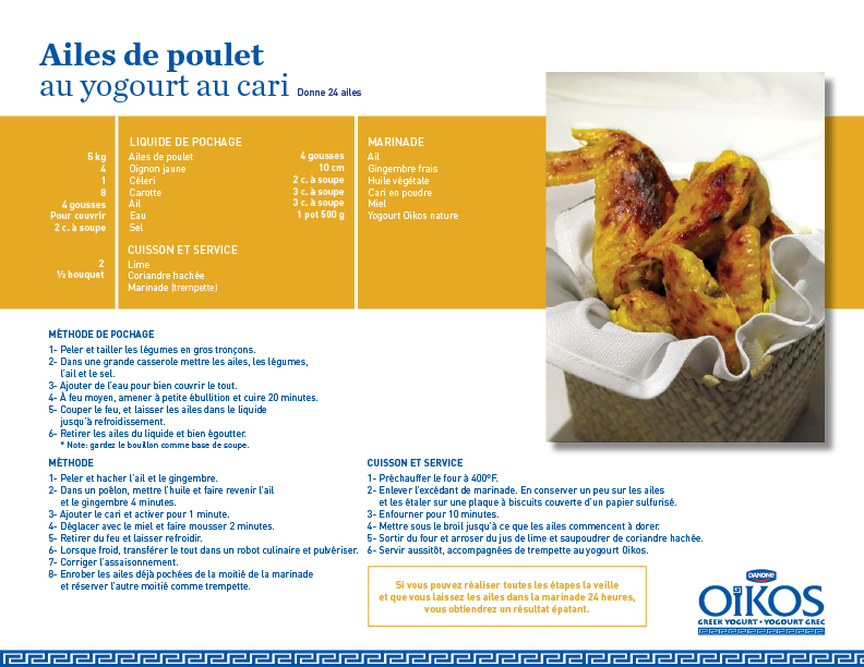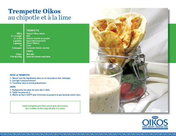 Voici en pièces jointes quatre recettes parfaites pour cette soirée, mettant en vedette le yogourt Oikos que vous pourriez partager à vos lecteurs. Vous pouvez aussi créer votre variation ou même développer votre propre recette, toujours avec Oikos. Affichez-la sur votre blog et nous vous enverrons des coupons échangeables pour cinq produits Oikos, en plus de vous offrir une visibilité sur la page facebook de Danone, qui compte plus de 70 000 fans! Simplement nous envoyer votre lien URL par courriel à dgilman@enzyme.ca, en incluant votre adresse postale.