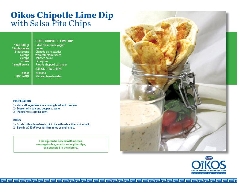 Here are 4 original recipes with Oikos Greek yogurt - post them on your blog either as is, add a new spin, or prepare something completely original to receive coupons redeemable for 5 free Oikos products. For any recipe you cook, see your post appear on Danone Canada’s Facebook page with visibility to 70,000 fans! Simply send an email with a link to your blog post and full mailing address to dgilman@enzyme.ca by kickoff on Sunday February 5th.