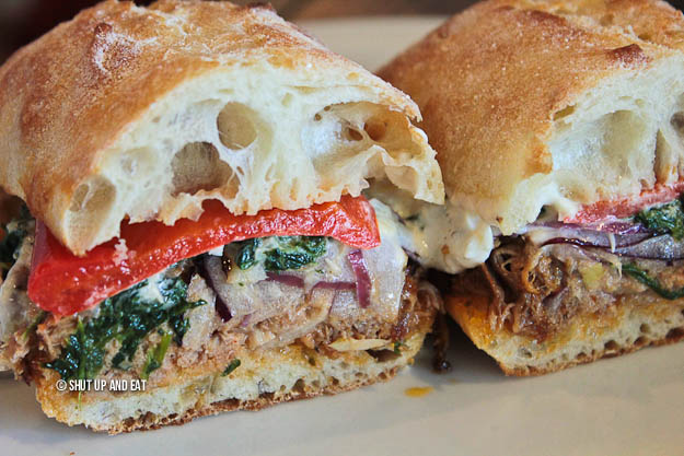 When it comes to comfort food sandwiches are at the op of the list for me. The Meatery in North Vancouver, BC is doing it right with carvery sandwiches that will make your mouth water. My favorite sandwich on the menu is the Roasted Pork with spicy Italian sausage,artichoke aioli, crackling and pesto. The sandwich is well worth the drive and I guarantee that you'll be coming back for more.
