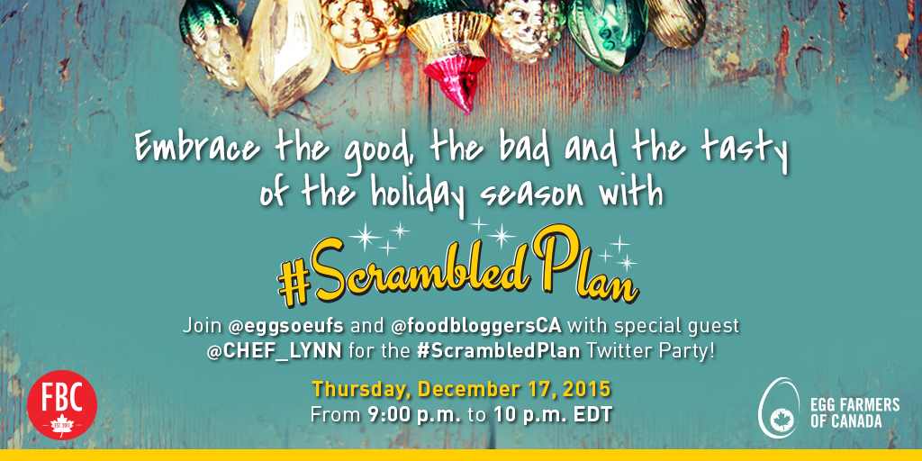 To be eligible to win a prizes you must RSVP (below) and tweet at least once (Original tweet, retweets do not count) during the party with the #ScrambledPlan hashtag. The winners will be announced throughout the party and be asked to contact Food Bloggers of Canada by Direct Message on Twitter and by answering a skill-testing question. Prizing is open to Canadian residents (not including Quebec). The rules can be found here.