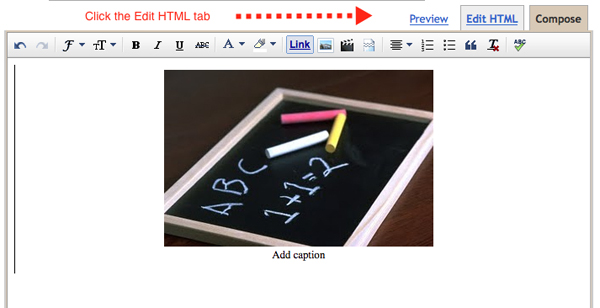 You'll need to click on the Edit HTML tab where you'll see some HTML code.  Don't be frightened! This is easy, I promise!