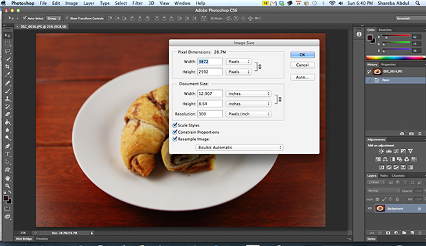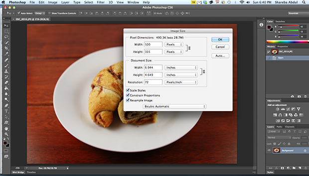 You can use a program like Adobe Photoshop to crop your photo, resize it to something suitable for your page, and change the resolution from 300 dpi to 72 dpi. You won’t see a visible loss of quality when you use the image on the web, but if you’re planning on printing your photos be sure to save your original file.