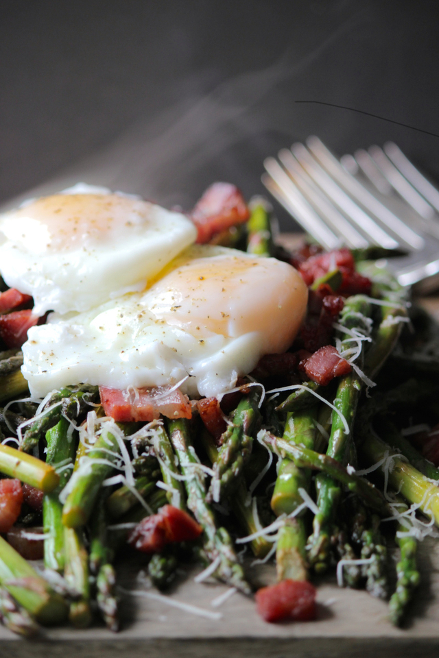 Beautiful Pan Seared Asparagus with Poached Eggs