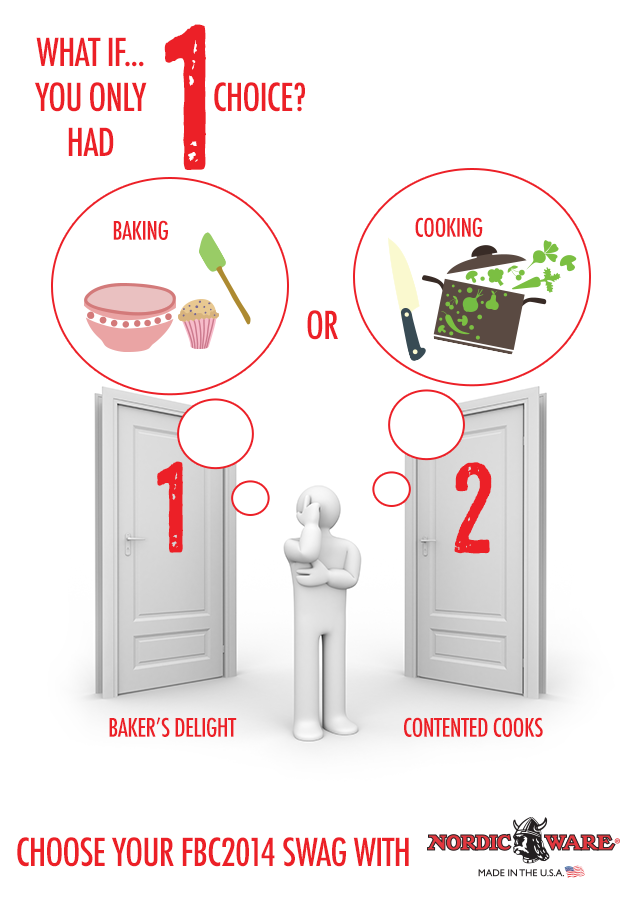 If you've already bought your FBC2014 ticket, make sure you check your email for our pre-conference swag announcement from Nordic Ware. You'll find you have a big decision to make and we need you to make it ASAP! If you haven't already, we need your replies this week to ensure everyone gets in the first wave of shipping!