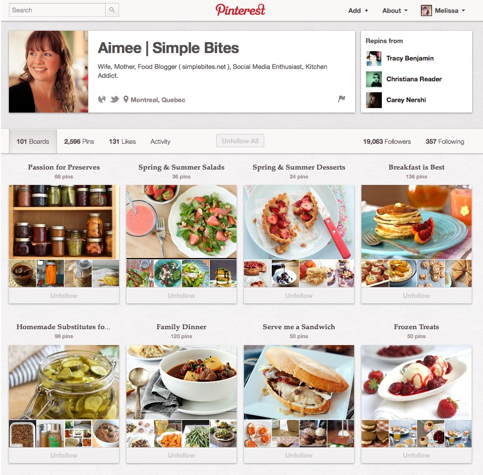We had questions about how to get the most out of pinterest for your blog and who better to go to for answers than Aimée Wimbush-Bourque from Simple Bites and Under the High Chair. Aimée was named one of Time.com‘s Top 30 Pinners You Should Follow and has over 19,000 Pinterest followers. She knows her stuff!