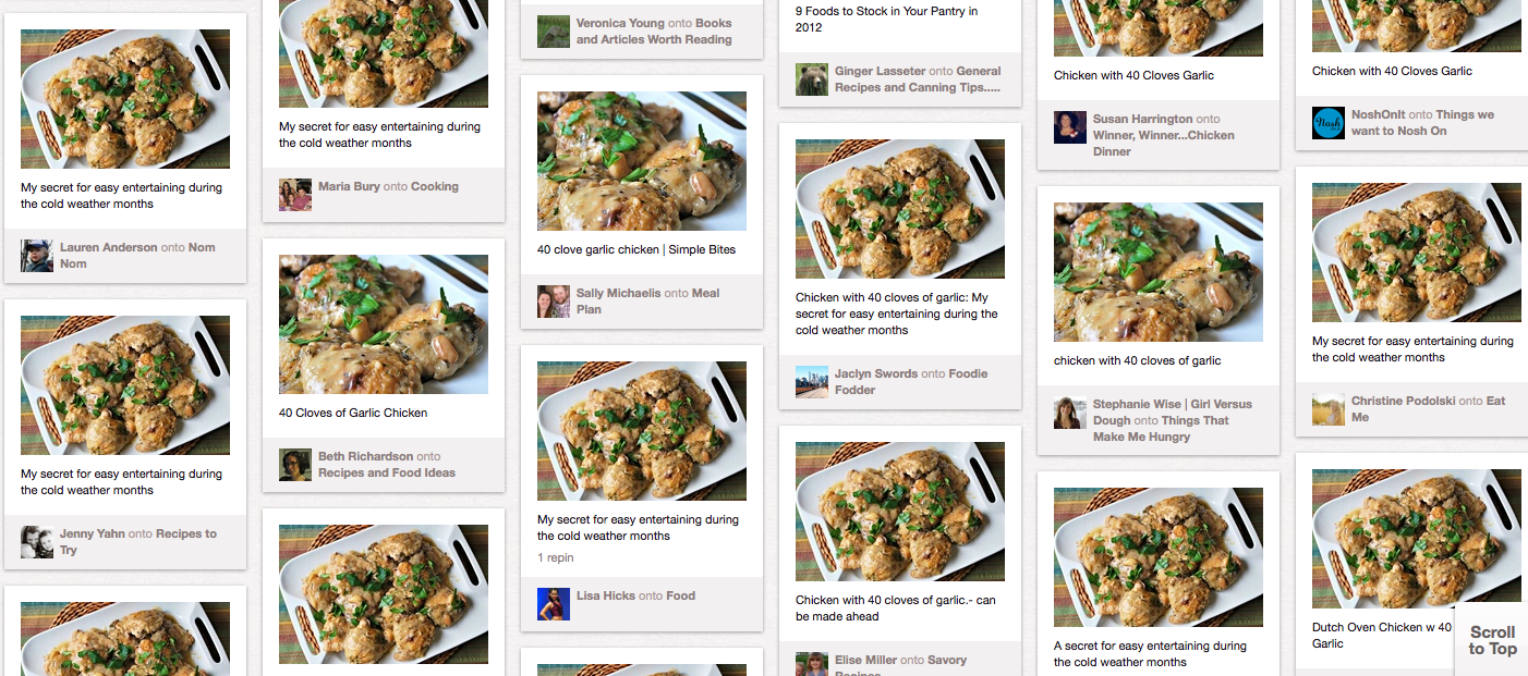 http://pinterest.com/source/simplebites.net/ shows me everything people are pinning from Simple Bites. The comments can be helpful, too, but don’t get too hung up on the negative ones.