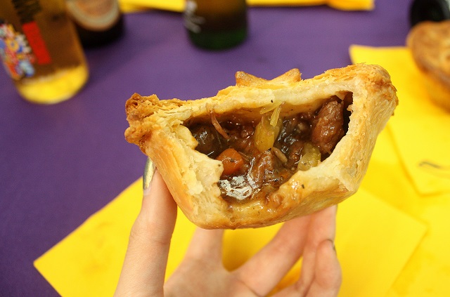 The individually handheld, buttery Kanga meat pies are excellent. Different than the British meat pie, which is typically shared and accompanied with mash and gravy, these grab-and-go Aussie meat pies fit perfectly in one hand. The Kanga pies are made with all kinds of filling: traditional minced beef, butter chicken, chicken pot pie, steak and bacon, pulled pork, and creamy zucchini.